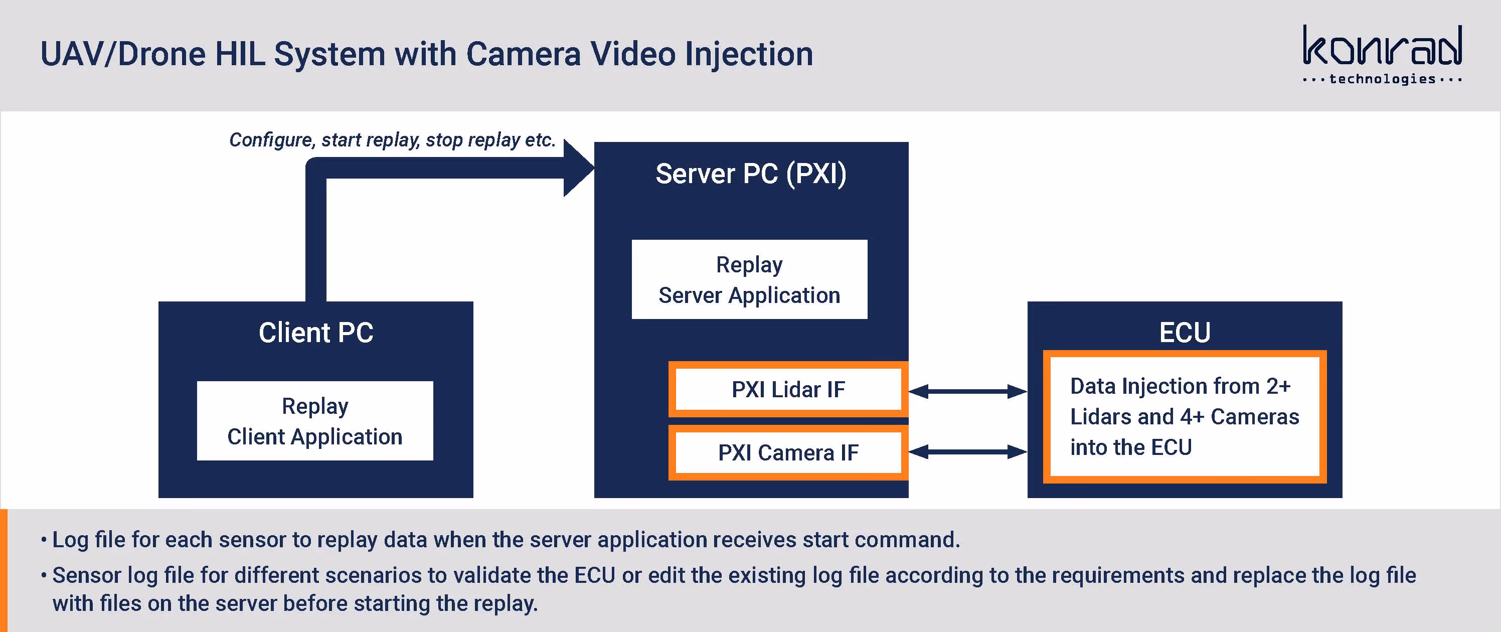 Konrad worked in partnership with a global customer to develop a Camera Video Injection HIL System for UAVs (Unmanned Aerial Vehicle)/Drones. The focus of the collaboration was to understand the unique challenges and deliver a flexible solution with a generic interface that can be utilised by the client‘s internal team.